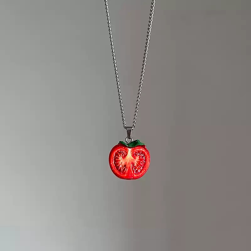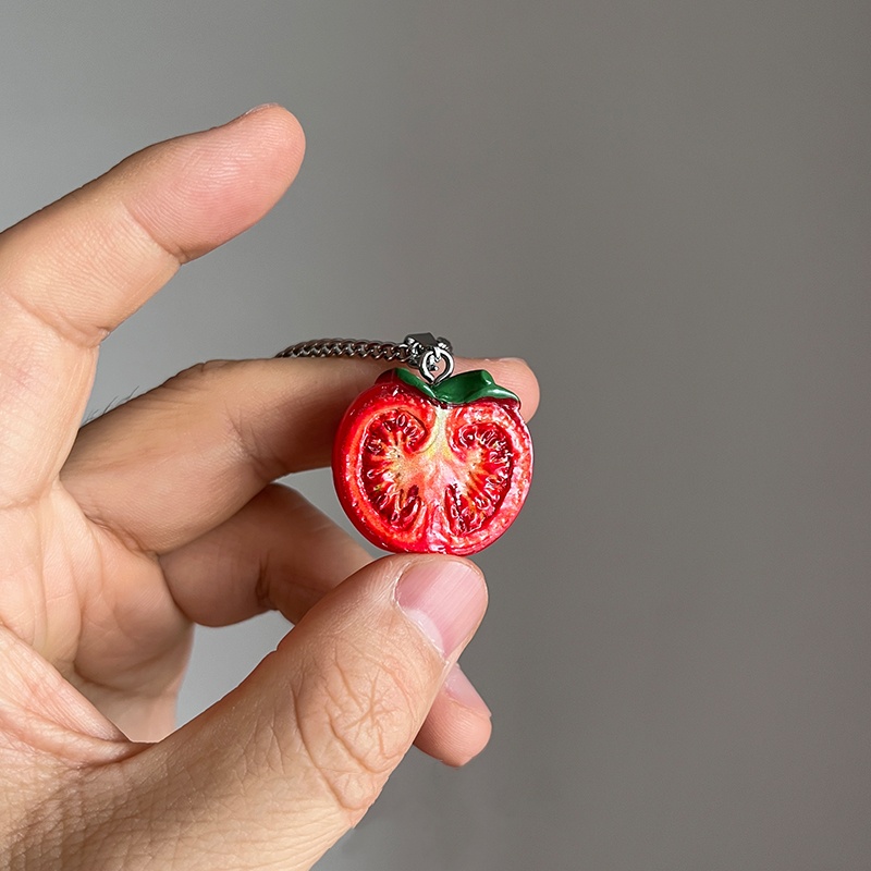 Half Tomato Pendant Necklace – Handmade Fresh Vegetable Jewelry | Tomato Always Glows by PocketWisp