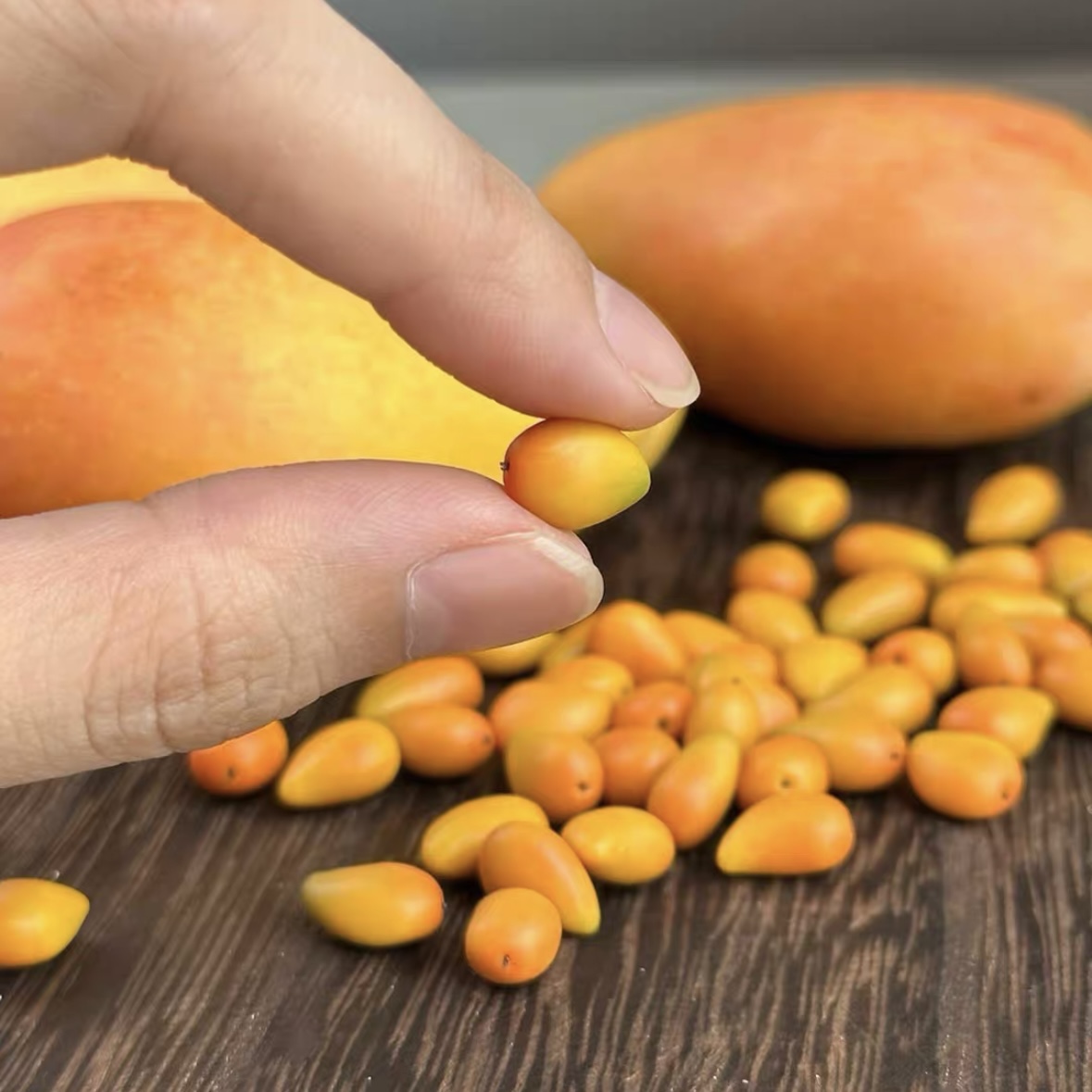 Discover a lifelike miniature mango handcrafted from polymer clay, measuring approximately 1cm. Each piece features vibrant yellow-orange hues and subtle textured details, making it perfect for dollhouse decoration, collectible displays, or tiny food props.