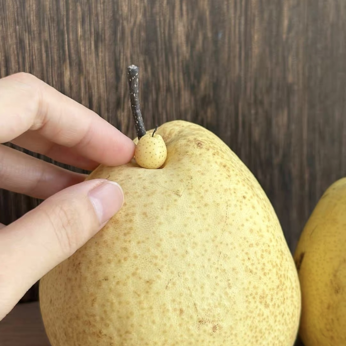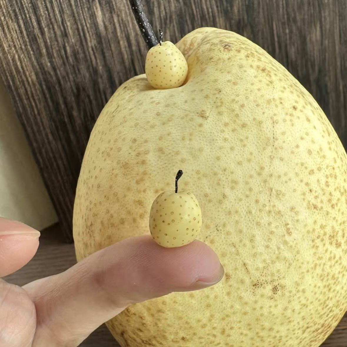 Discover a lifelike miniature pear handcrafted from polymer clay, measuring approximately 1cm. Each piece features realistic green and yellow shades with subtle texture details, making it perfect for dollhouse decoration, collectible displays, or tiny food props.