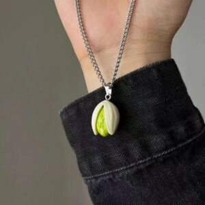 This Pistachio Pendant Necklace – Handmade by PocketWisp is inspired by the subtle charm of a pistachio’s natural form. We created this pendant to capture its gentle curves and soft earthy colors, reflecting both simplicity and quiet elegance. Each piece is carefully handcrafted, turning the humble pistachio into a tiny symbol of calm and natural beauty.